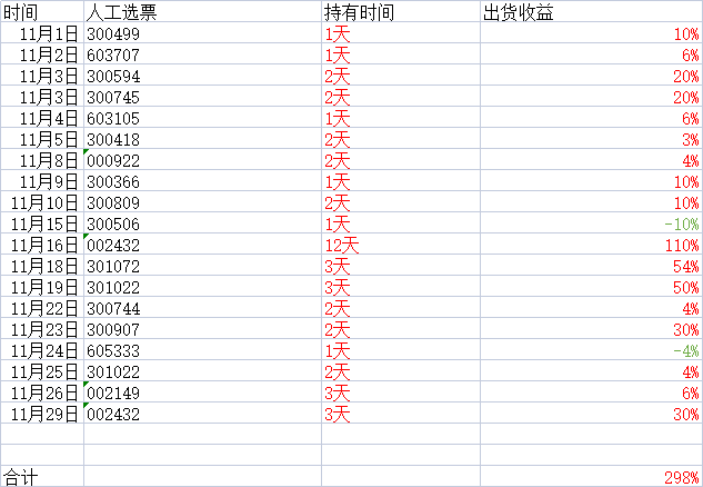 11月实盘回顾,收益空间高达298%