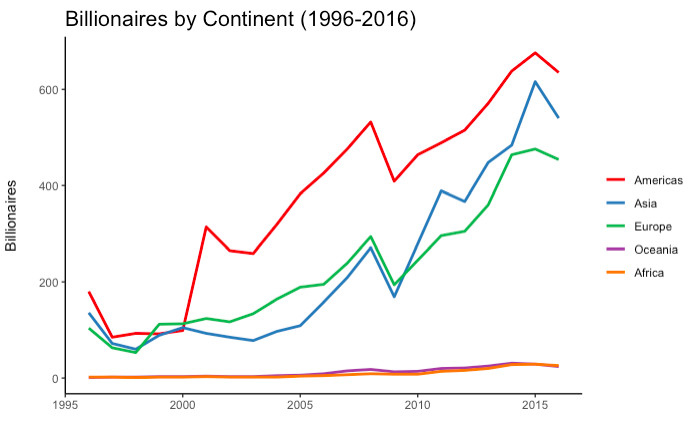 图片内容:各大洲亿万富翁数量(1996-2016)