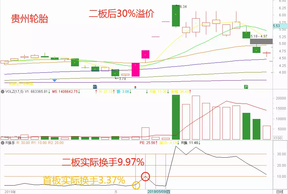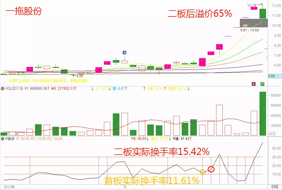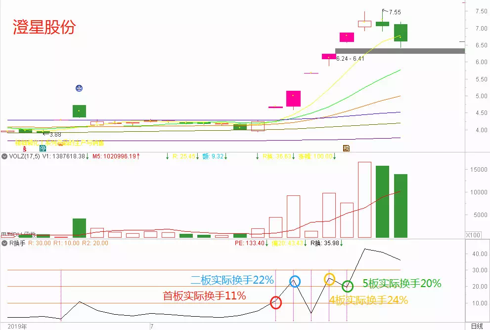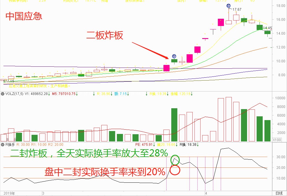 实际换手率维持在10%-20%左右,为良性换手,这样的换手二板要结合分时来看承接,分时再度转一致时上板,上板量控制在该实际换手率范围为最佳: