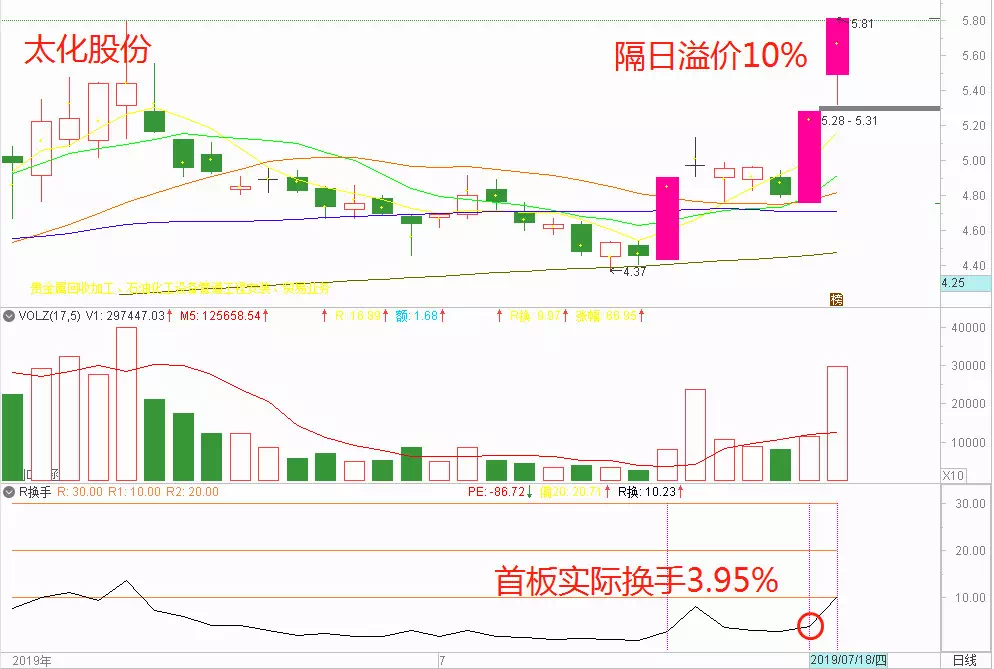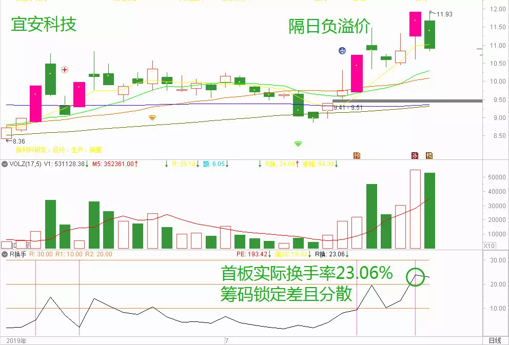 实际换手率维持在4%-10%左右,为良性换手,这样的首板在量能的角度,筹码锁定度高,叠加公告利好和消息自然形成的一致上板,隔日往往都有高溢价。