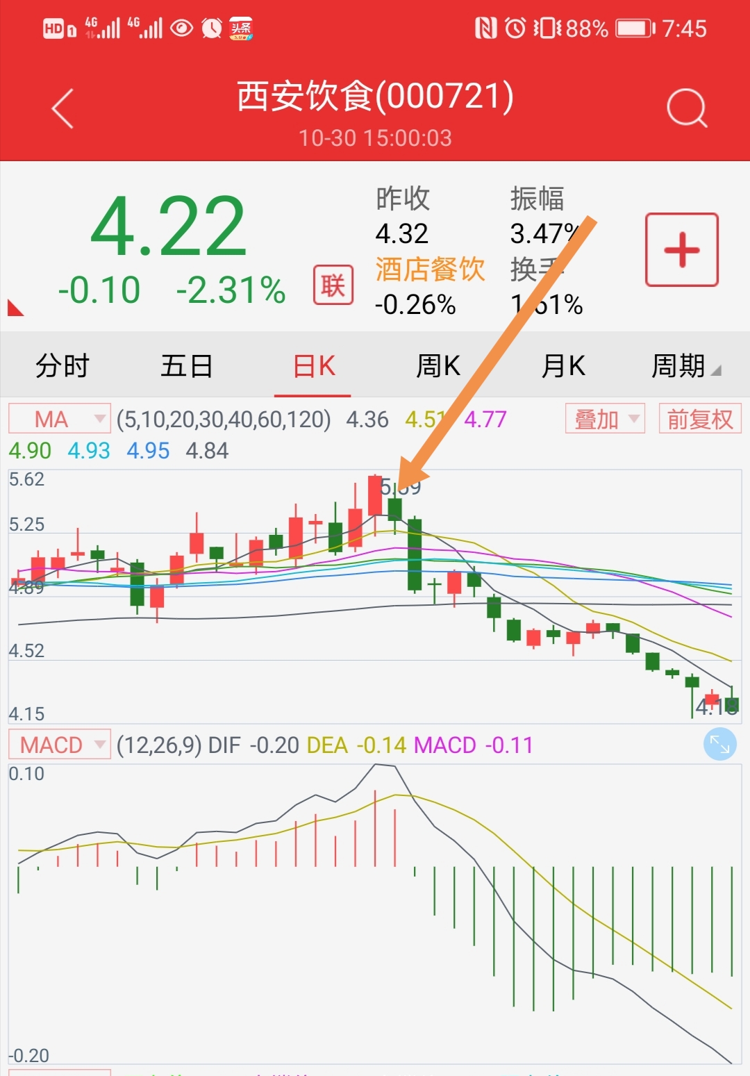 西安饮食最可能出现低吸点的位置在60分钟周期,既然这样,我们只需要耐心等待60分钟周期出现一买,反抽到4.5附近抛出。