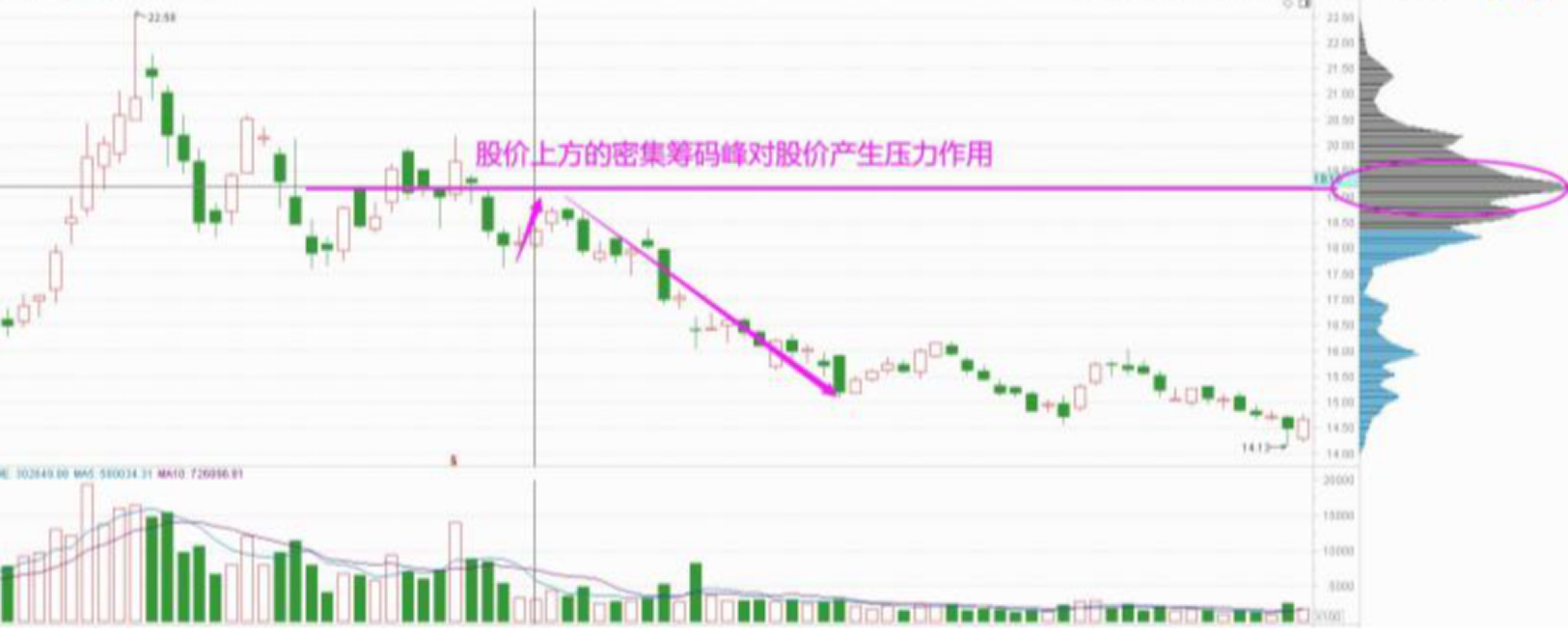 其中的逻辑就是,股价在密集筹码峰的上方时,说明部分资金因为不看好后市或达到盈利目标,砸低股价出货,以致于密集筹码峰处套牢了大量筹码,当股价再度回拉到筹码峰附近时,这些套牢筹码就存在解套兑现的预期,从而对股价形成压力。