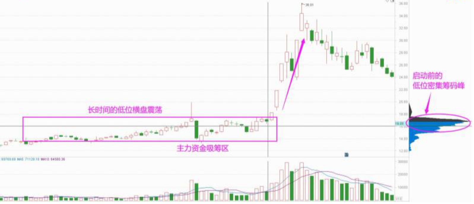 3、筹码分布可以帮助我们有效识别大资金(主力或庄家)建仓、拉升、出货等一系列完整过程