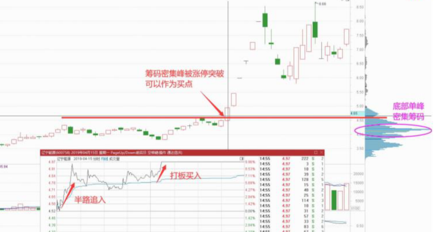 1、个股的启动,往往以底部密集筹码峰的强突破为启动标志,所以,跟上主力资金的步伐,买在底部密集筹码峰被强势突破的时候,是最佳进场时机,操作手法上,可以是半路,也可以是打。