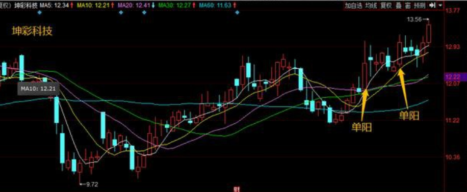 单阳不破,其技术意图在于如何最快速的发现次日就要拉升的股票,现在已经广泛用于各种周期上的趋势分析,比如分时、日线、周线、月线,年线走势等。