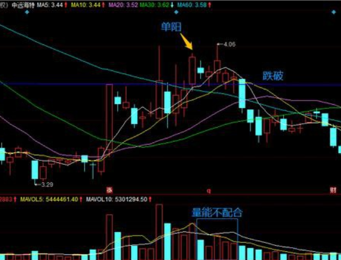 当30日均线拐头向下时,市场处于弱势阶段。在此阶段出现的任何类似单阳不破;形态都要尽量避开,一些不能恪守规则的投资者,在此操作容易出现较大错误。