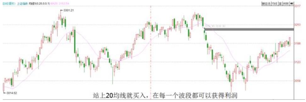 20均线向上并且股价在20均线之上两个条件同时满足,买入。股价上涨一段后,20均线拐头向下且股价在20均线之下,连个条件同时满足,卖出。