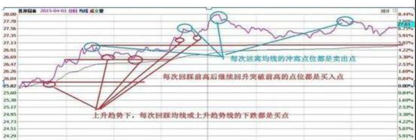 做T的关键就是看分时均线,股价在均价线上方远离均线的时候卖出,股价在均价线下方远离均线的时候买入。