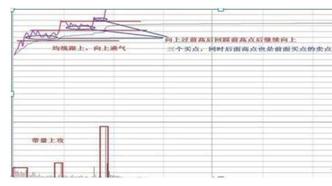 向上过前高后回踩前高点后继续向上,均线跟上(带量上攻)