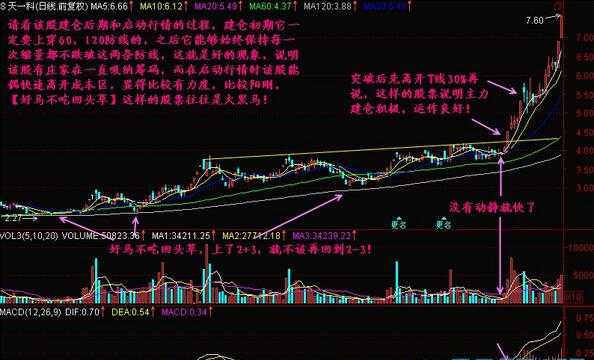 股价一直受压于60日均线或120日均线,当其股价第一个涨停板,且强势突破了60日均线或120日均线后,随即再做线上平台整理(洗盘),当再次出现放量以大阳或涨板板突破平台时,当天可大胆介入。如下图所示: