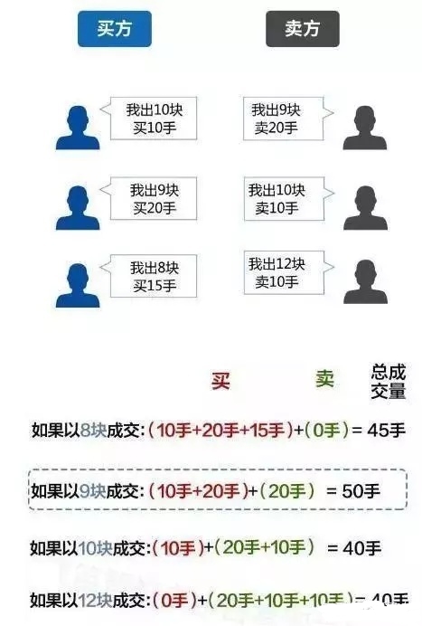 如上图,这6个申报产生了4种不同的价格,假设都以4种价格成交,因此可以算出这4种价格的总成交量。 可以看出,以9元的价格成交量有50手是其中成交量最大的,根据规则,系统会选取9元作为开盘价。 02 【集合竞价技巧】 9:15----9:20 这五分钟开放式集合竞价可以委托买进和卖出的单子,你看到的匹配成交量可能是虚假的,因这5分钟是可以撤单。