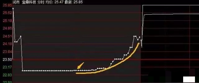 二、集合竞价------无量一字 像这种形态,买点机会一般在开盘之后,股价分时承接强,具体表现为不低于开盘价,稳步上攻时买入。 如果开盘后往下杀摁,并且没有快速反弹到开盘价之上,则不能参与。