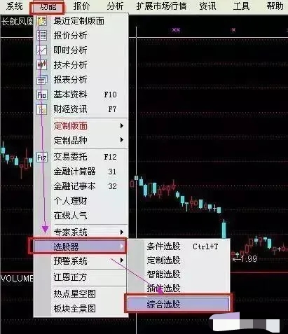 要点 1、整个集合竞价期间,撮合价格逐步加高,最好最后一两分钟有突破拉高,最后成交价高于1%低于4%. 2、9:20之后成交量逐渐缓慢放大,且红柱子为主,形成密集成交;9:20分前出现涨停或跌停更好; 3、该类型要求最好是个股行为,不要受消息面影响,K线形态处于相对低位,近期有过异动,剔除处于下降通道个股。 买点:参与集合竞价,一定要在9:24分左右下单,迟了追涨成本较高,太早容易出现变故,所以在时间的把握上要精准一些。 04 集合竞价选股法步骤: 第一步:时间:9:25—9:30之间进行选取 第二步:打开60排行榜 第三步:点击量比排行 第四步:排行前30只的,加入到新建板块,以当天日期命名 第五步:进行筛选,输入板块股名字进入该板块,涨幅4%以上的删除,涨幅3%以下的也删除 第六步:点击现量,选择排行前2名的作为当天的集合竞价股。 选股条件设置: 1.量比大于3倍 2.涨幅在1%—5%之间,也就是1%<涨幅<5%备注:这样规定的目的,是能选出来的股,让我们有足够的盈利空间,当然也可根据个人情况进行调整数据。 3.成交量:VOL>4000 (数据也可根据自己情况进行调整) 4.热门板块,在板块排行榜中选择前五名 选股条件设置方法: 1.打开通达信行情软件,点击左上角的“功能”—“选股器“—”综合选股“。