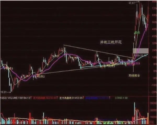 多头排列有多种形态,是20、120、250日均线经过金叉穿越后,形成极度的背离多头排列的特殊技术形态,叫作三线开花,并线三线开花,顺向三线开花,以及逆向三线开花,都是非常有效的预测股票价格走势的技术形态。
