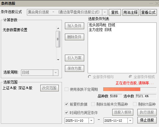 11月13日庄控龙回头集合竞价选股