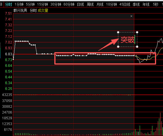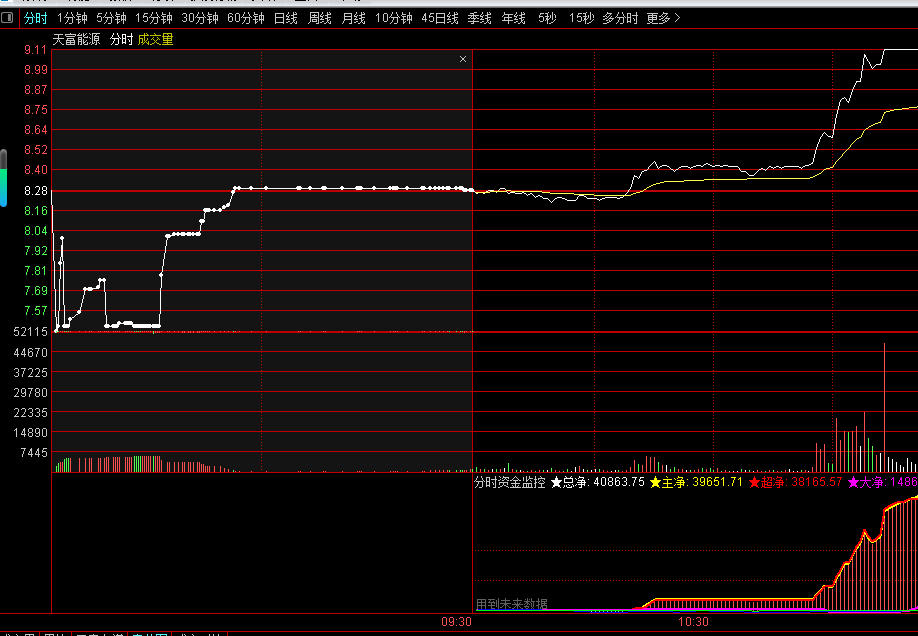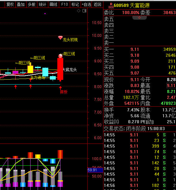 水下低开,跳空抢筹,白点密集。拉基比9408/2118=4.44