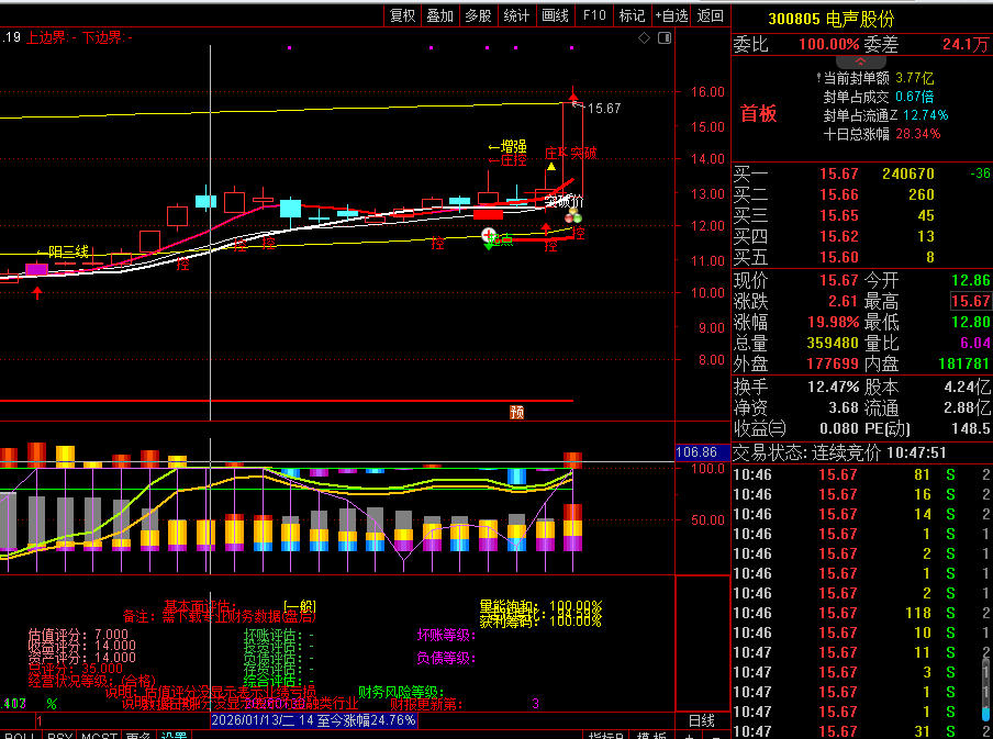 庄控选股电声股份止盈25%