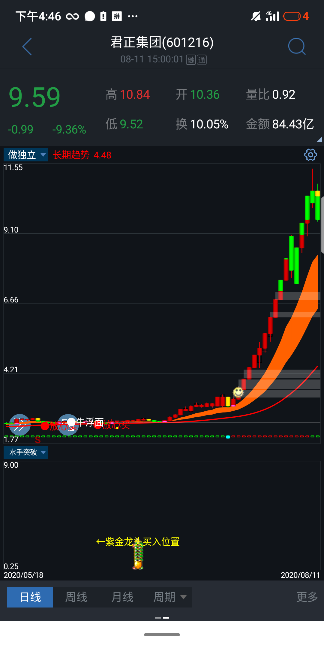 紫金战法;主要是做强势的🐉龙头股;这是经传股事汇的第一战法;比较实用;当战法当中出现黄色柱子的时候;表明已经是走出横盘突破的意思;出现紫色的是指强势个股;紫色现在我已经改写成选股为主;所以说选出的股都比较强势;都是🐲龙头标的;可做超短线;🔥或波段;选股精度高;也比较少;较为实用的!