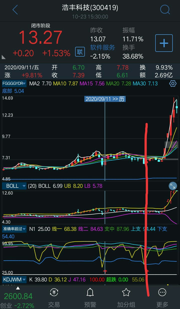 准确率超过百分之八十 关注公众号“ 肥尾量化平台 ”,公式 一键选股 线一上穿下支买入,本指标适合作为买不适合作为卖,配合系统boll和我发布的macd使用。这里最垃圾的指标都比同花顺这类软件的会员要强。觉得不错的话帮我宣传宣传😄谢谢了☺ 股票:中国人寿 代码:601628 日期:2020-07-13 ~ 2020-10-23