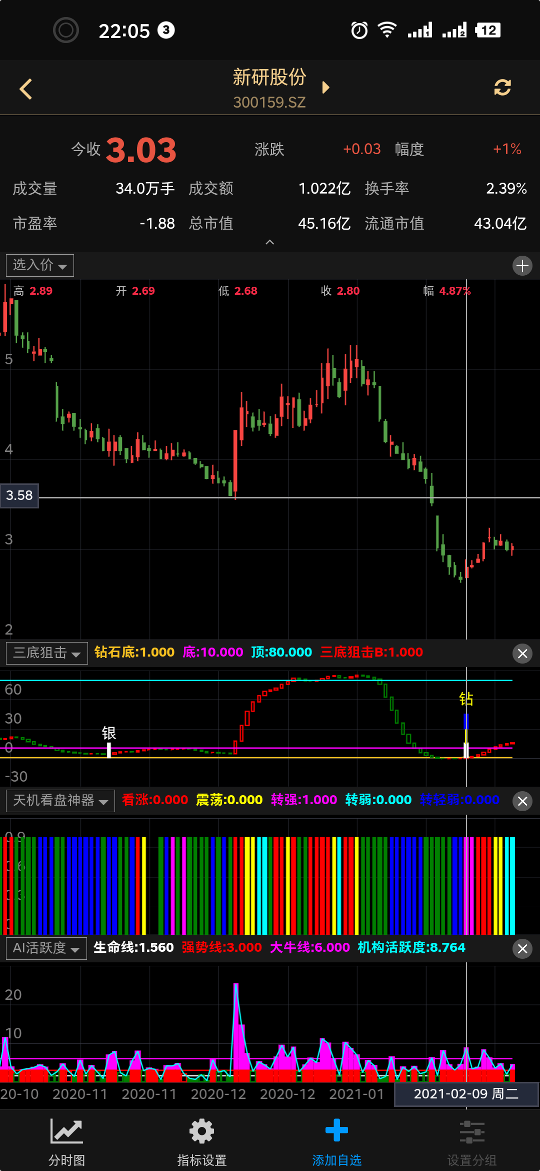 3. 蓝色实心柱表示钻石底,适用于熊市超跌抄底;