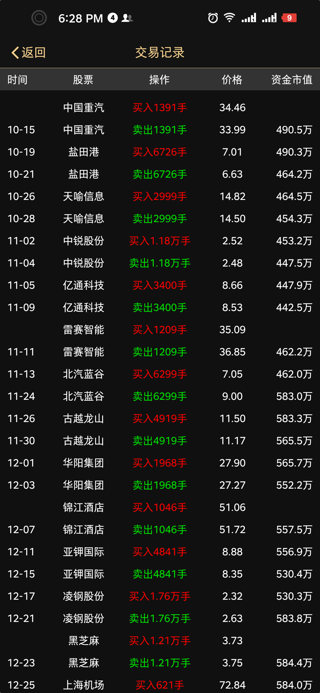 ⚠️量化大师,有对应的策略,全部都是持股三天(量化大师实际上是持股两天,他是尾盘买入),盈利范围降低了很多,少了当日盘中买入的,大部分收益。