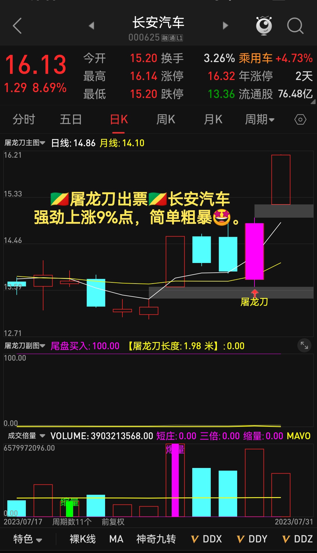 🇨🇬屠龙刀出票🇨🇬 长安汽车,强悍大涨9%🤩