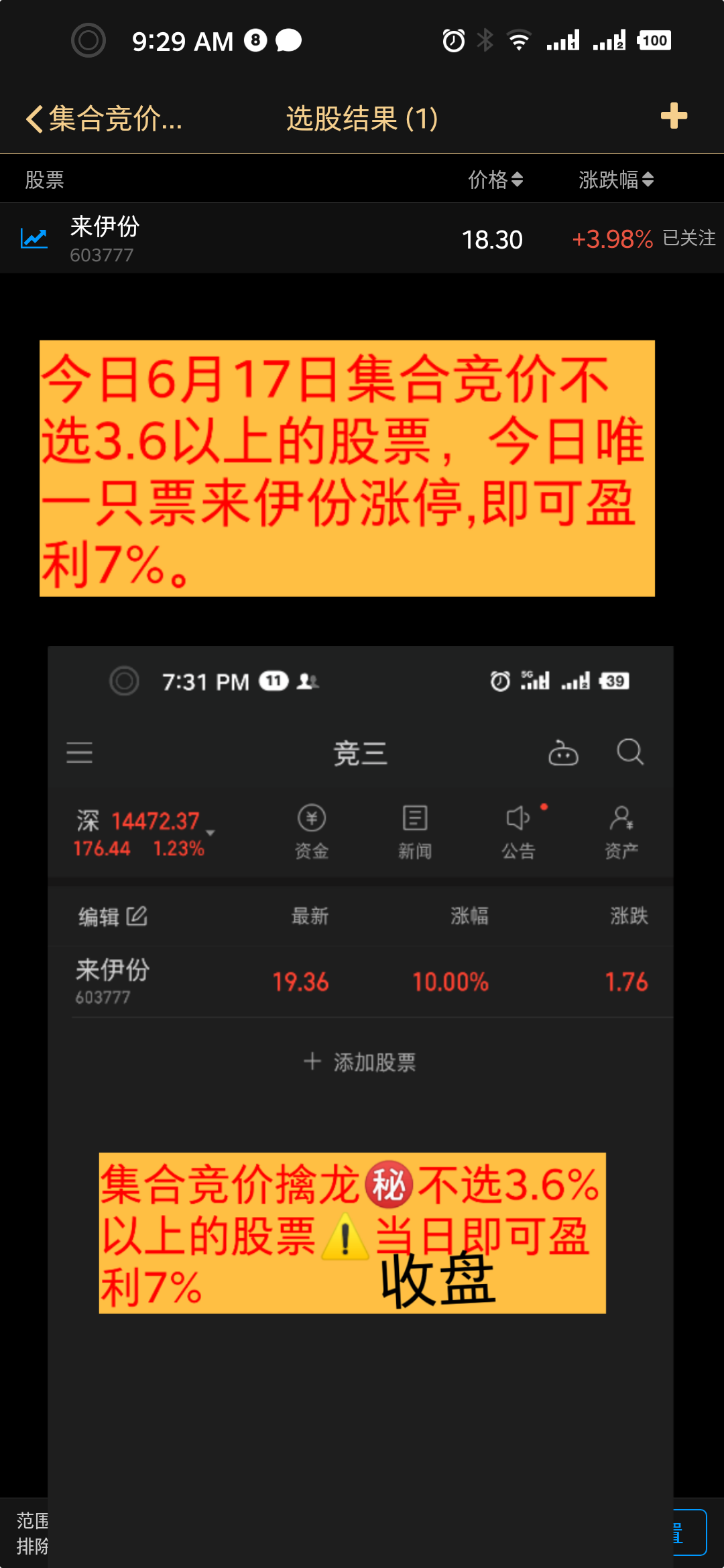 👍集合竞价选股,不会选出3.6%以上的股票,稳健安全当日即可盈利7%