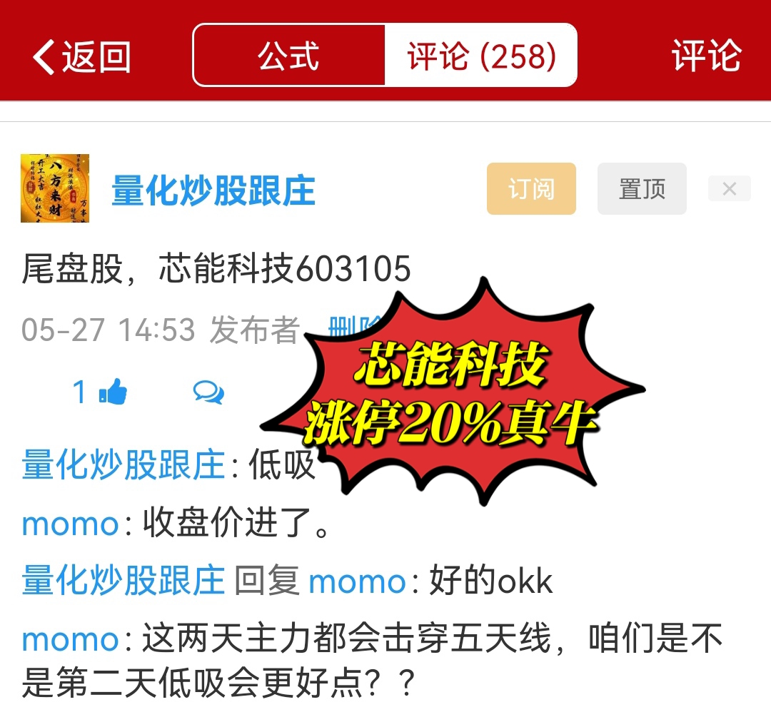 稳定收益/热点抓牛 关注公众号“ 肥尾量化平台 ”,公式 一键选股 专注热点创业抓牛,稳定复利!准确率99%,低吸买进,提示买卖点,有庄有我,跟随资金操盘,欢迎订阅购买,欢迎实力验证,分仓买票,舒服吃肉!!!!