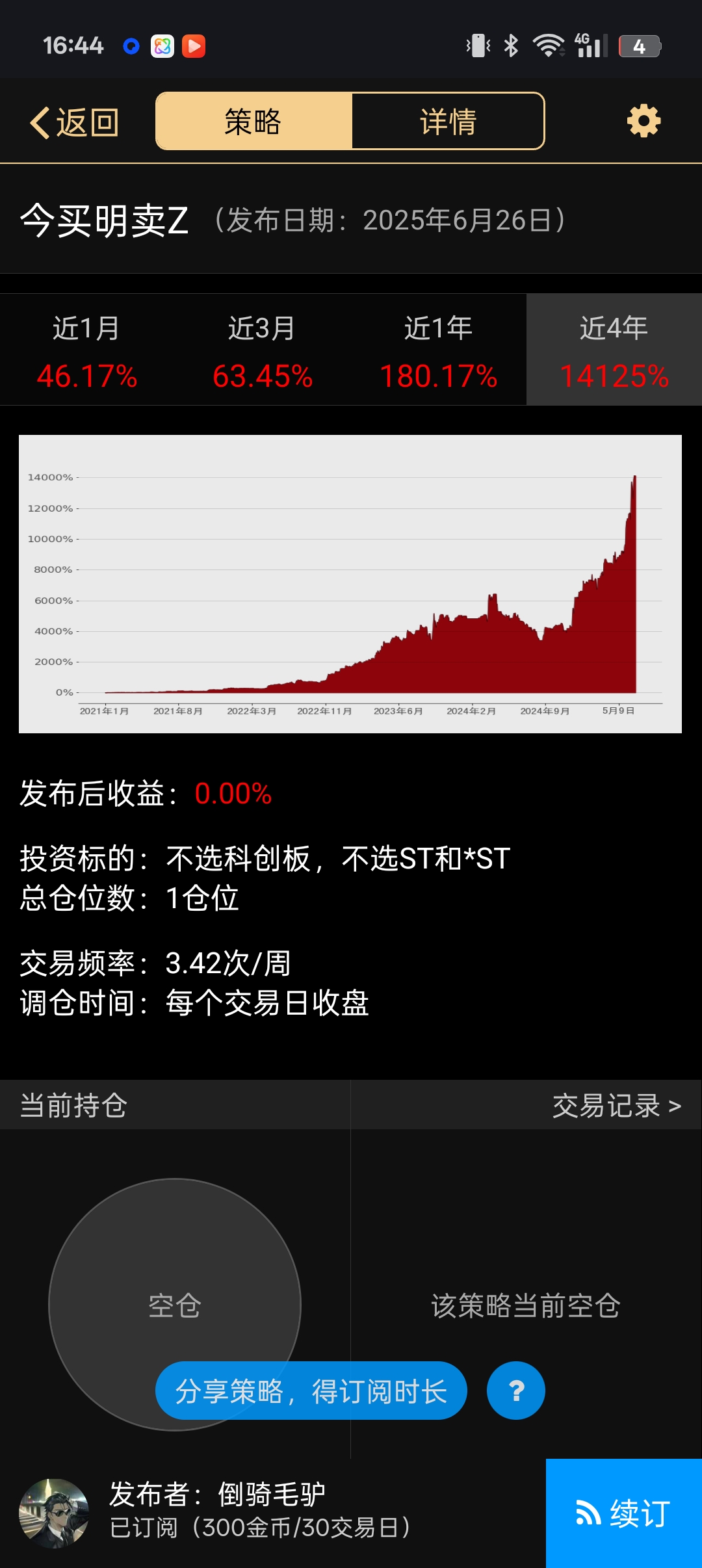 大盘不择时版,今买明卖结合rsi超卖选股公式 关注公众号“ 肥尾量化平台 ”,公式 一键选股 今买明卖Z策略之选股公式,这里没有大盘择时,有票就买,不看大盘脸色,同样是选择换手率最高的股票,想和策略买的票一样就尽量在14.50分后选股,但股票瞬息万变,不保证和能和策略票一样,也可以直接订阅今买明卖组合,14.30调仓的今买明卖组合收益也不错,可以关注一下
