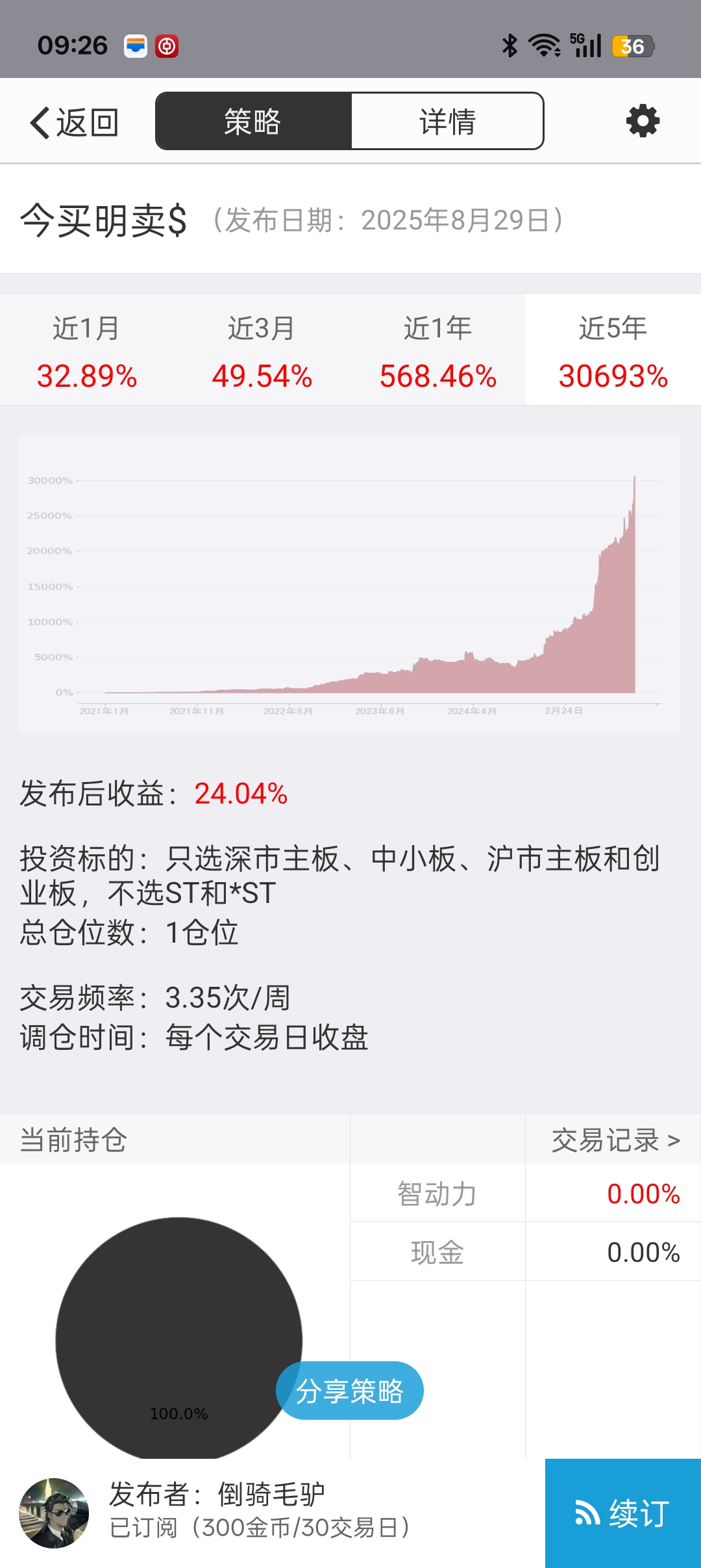 今买明卖$选股公式 关注公众号“ 肥尾量化平台 ”,公式 一键选股 今买明卖$的选股公式 股票:苏试试验 代码:300416 日期:2025-07-28 ~ 2025-08-29 股票:欣龙控股 代码:000955 日期:2016-01-28 ~ 2016-10-26