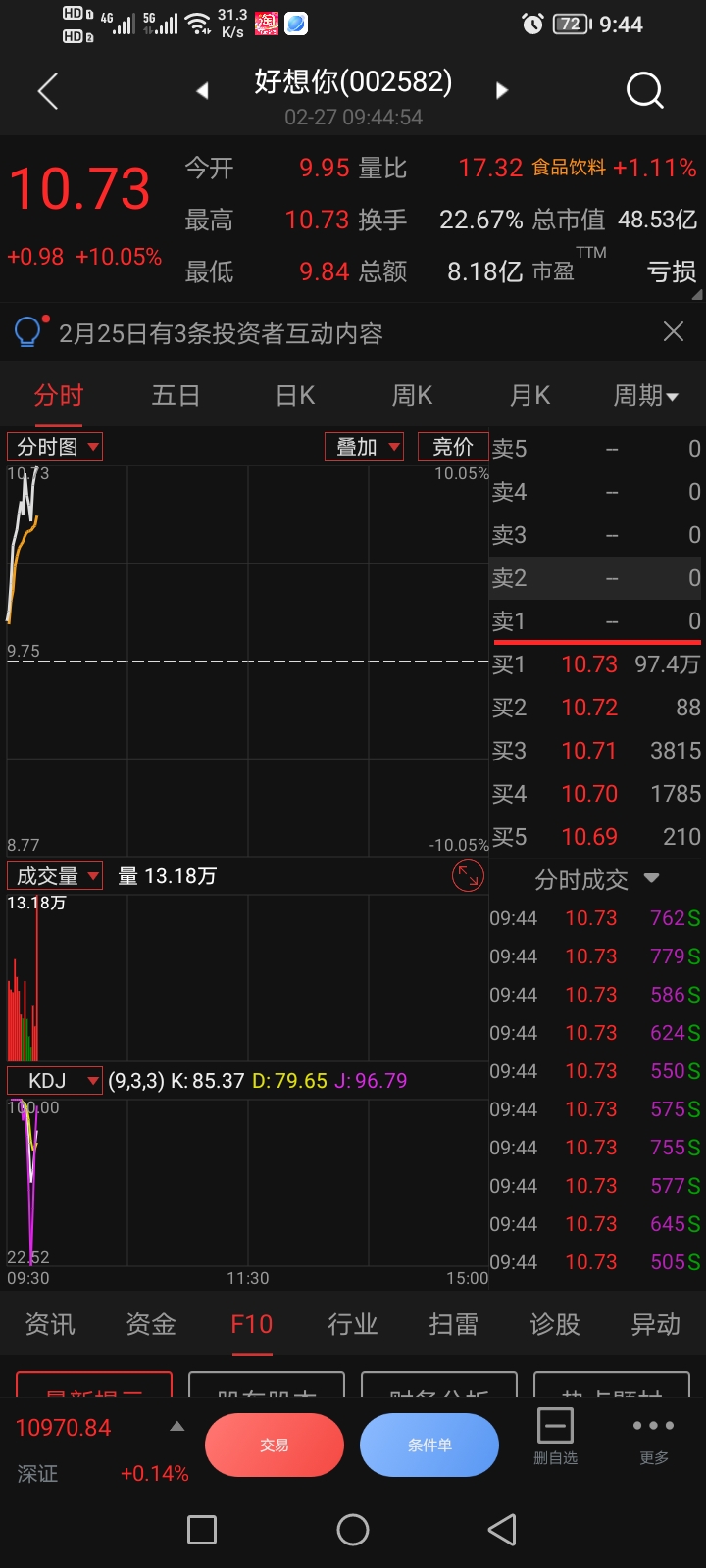 心跳拉升(抓涨停)成功率很高,免费试用! 关注公众号“ 肥尾量化平台 ”,公式 一键选股 1.心跳拉升选股指标,短线指标。2.选出的股票都是强势上涨股票,排除已经封涨停的。参考其他指标判断后再买入。3.在盘中随时选股,买入后大概率会涨停,建议2点45后使用,准确率高。4.买入时一定参考其他指标,确定股价位置,不要追高买入。5.仓位不要太高(严禁重仓),可以多买几只股票,利益与风险是并存的。6.第二天再涨停继续持股,否则2-3天逢高有3-10%的利润就出局,再选股买入。【供验证参考,股市有风险,入市需谨慎!】