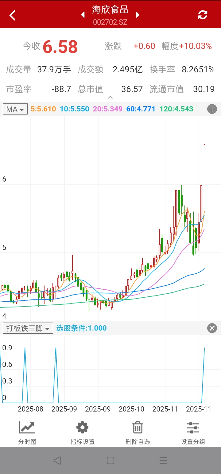 打板铁三脚 关注公众号“ 肥尾量化平台 ”,公式 一键选股 集合竞价后9:30之前选股,选开盘换手排名前3打板,总之换手率越高越好,最好取换手率最大的那一票作为买入打板目标股。凡引用此公式码源作参考者默认自担风险责任,自负盈亏,股市有风险,投资需谨慎!