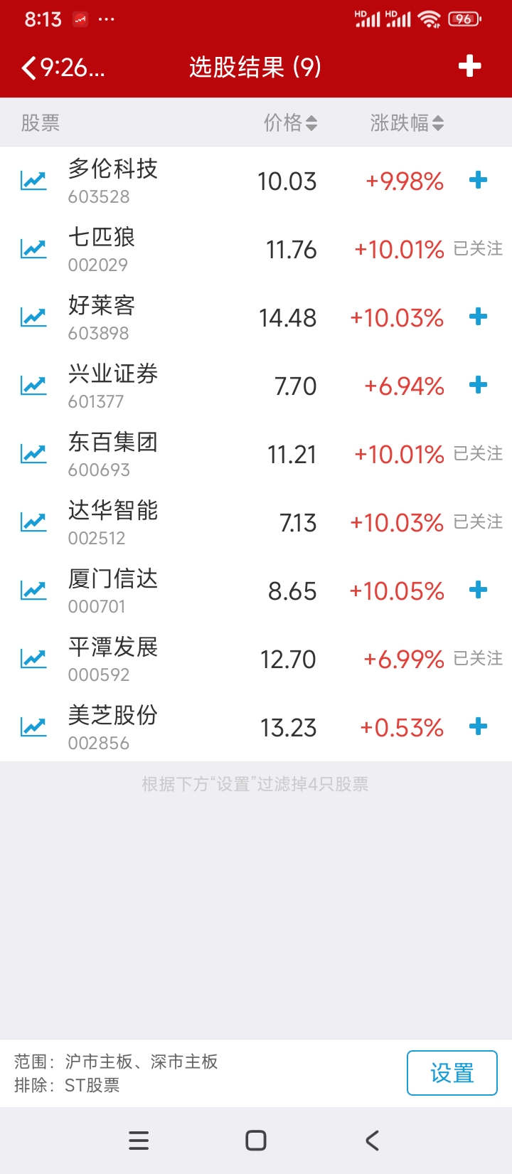 早盘9:26~9:28选股,开盘后观察一下走势,平稳后介入,注意仓位,这是今买明卖超短模型,第二天收盘前不管盈亏都是卖。该模型成功率68%。选股需要剔除ST股。
