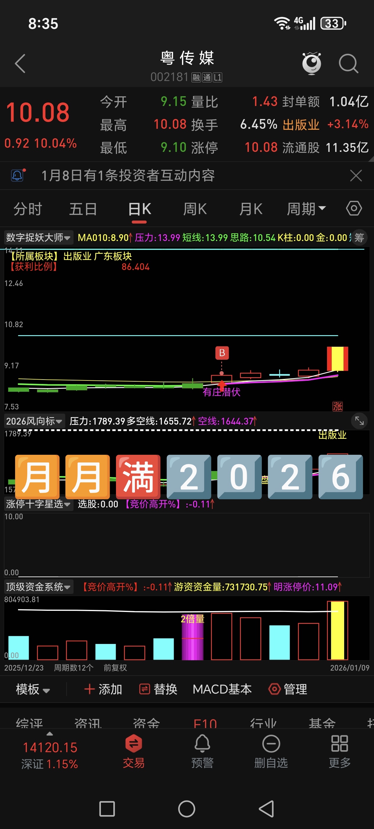 😈捉妖选出…万向钱潮。后期2连板📈22%
