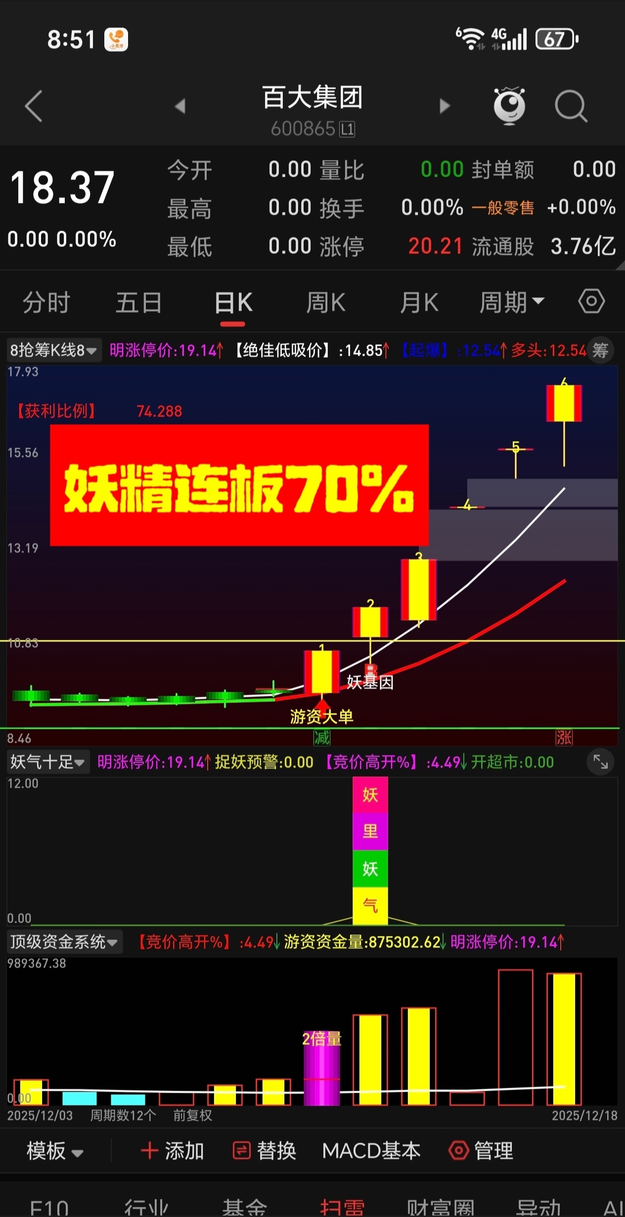 李团长捉妖王😈杭齿前进,6连板77%收益。