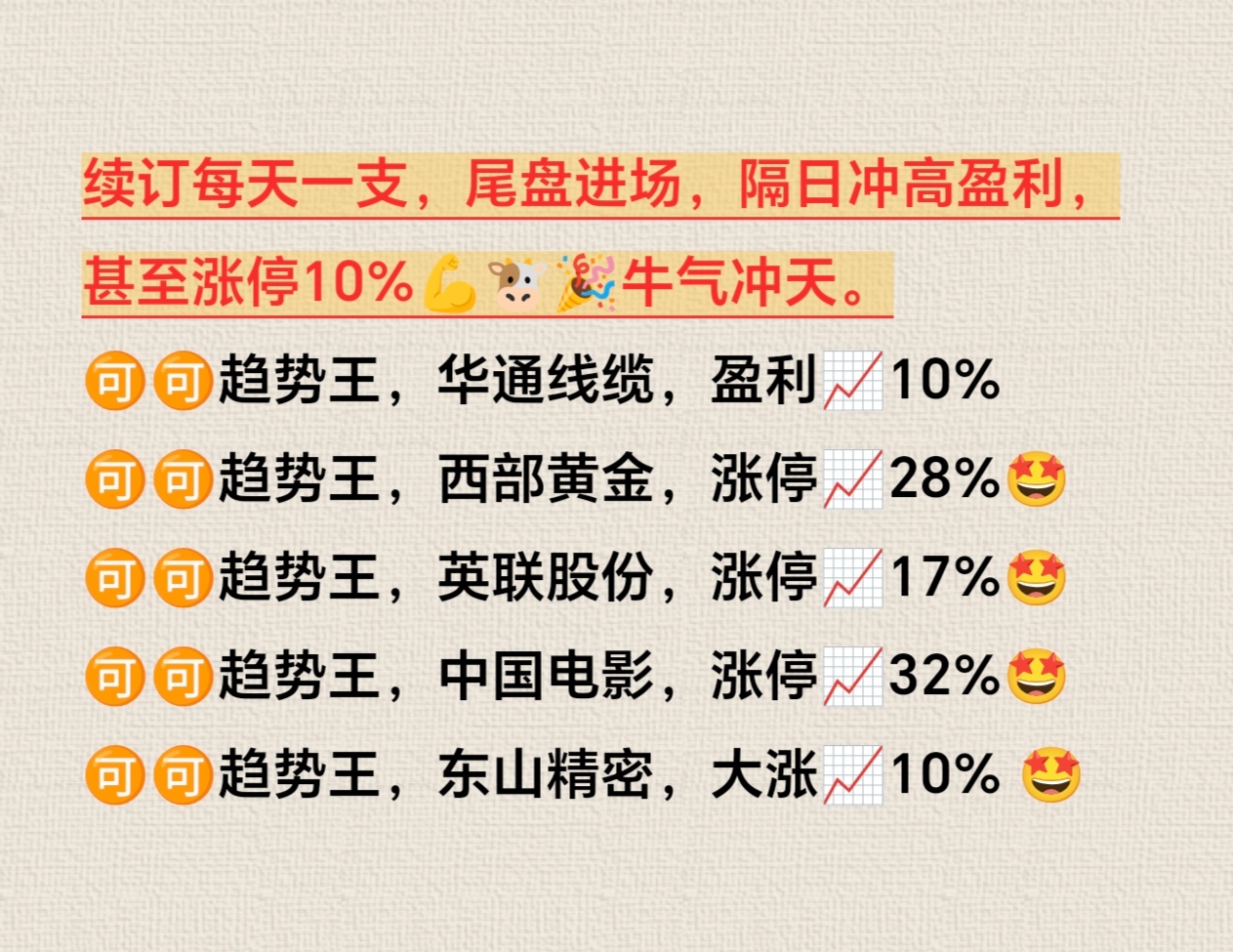 🉑🉑猎庄趋势王/主升浪👑连胜🐲通鼎互联25%💰中国电影32%