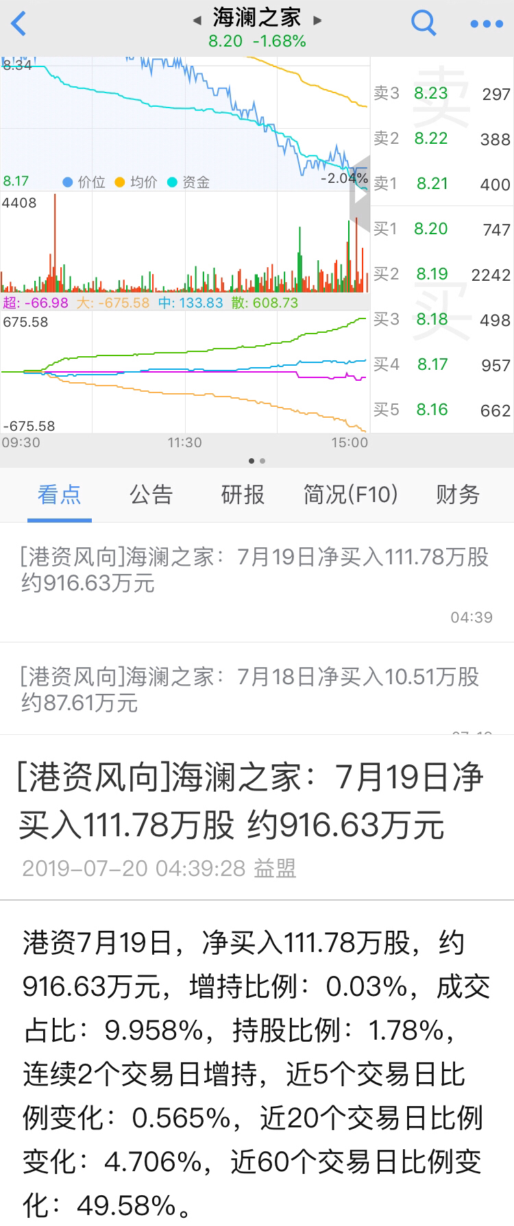 2019年07月24日公告,公司拟以自有资金回购公司部分社会公众股份,用于减少公司注册资本,公司将依法对回购的股份予以注销。本次回购股份资金总额不低于人民币6.91亿元,不超过人民币10.36亿元。回购股份的价格不超过人民币12.00元/股,回购期限:自股东大会审议通过回购股份预案之日起不超过12个月。——近期利好之一;从周主力资金来看,六月初以来一直是净流入,今日散户配合也好,向下逃跑态势与主力形成反向对应。长期看好,需要的只是耐心,没耐心的走开就是了,个人喜好而已(有人喜长有人喜短),不必争论。就像前几天对明雕股份的一份预亏公告的争论,有人抬扛非说有可能连续跌停,拿推测来说事,不足为论也;事实来说话就好啦。谢谢。