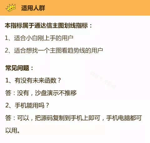 1、适合小白刚上手的用户2、适合想找一个主图看趋势线的用户