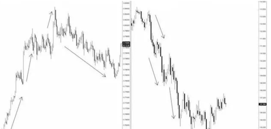 趋势——价格在一段时间里保持上升或者下跌,那么就会形成相应地上涨趋势或下跌趋势;