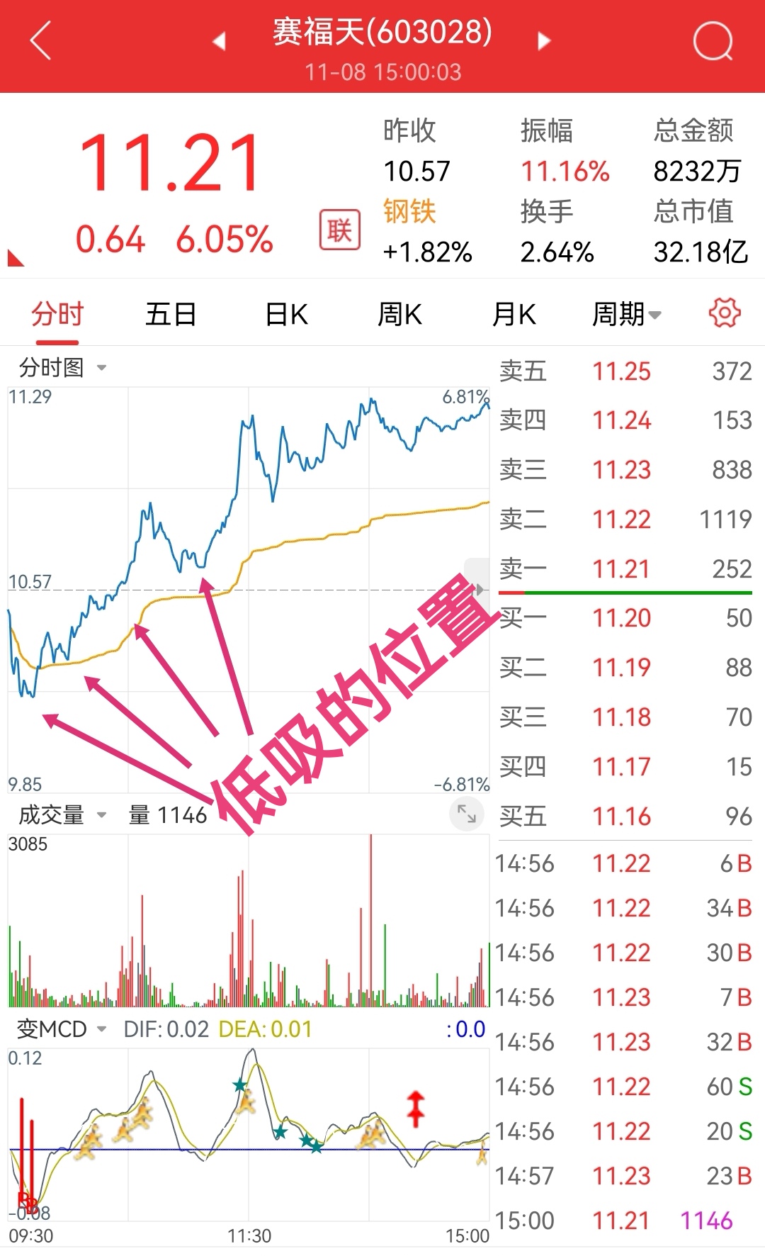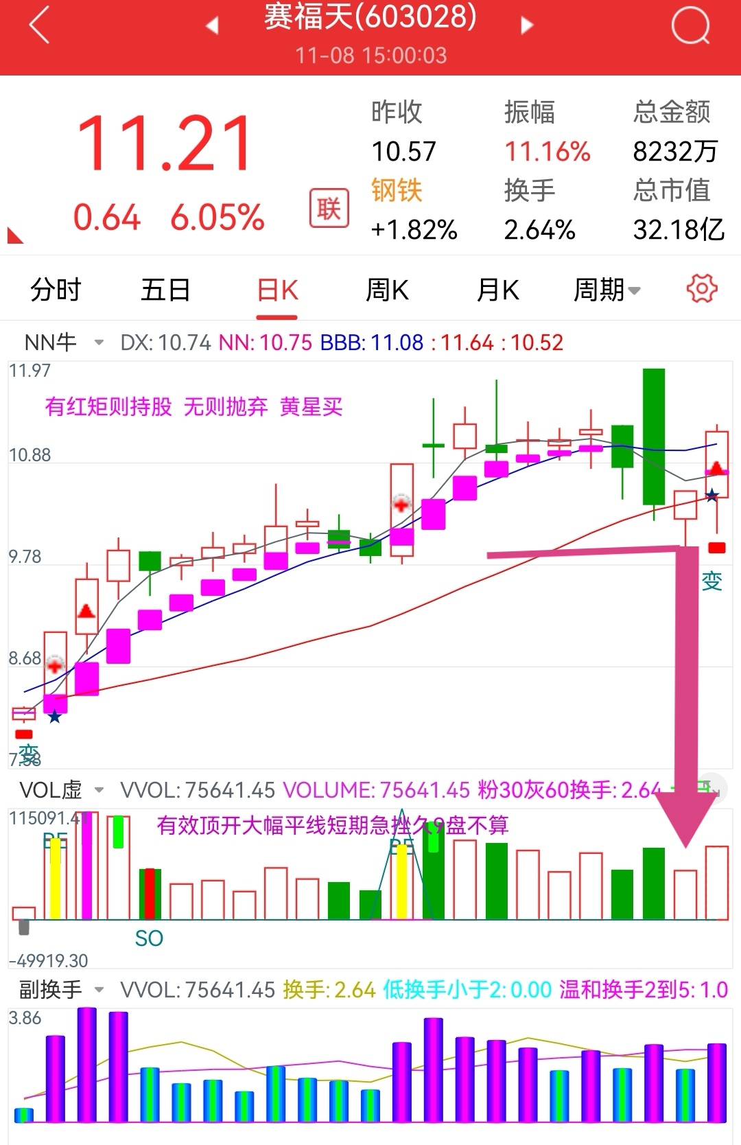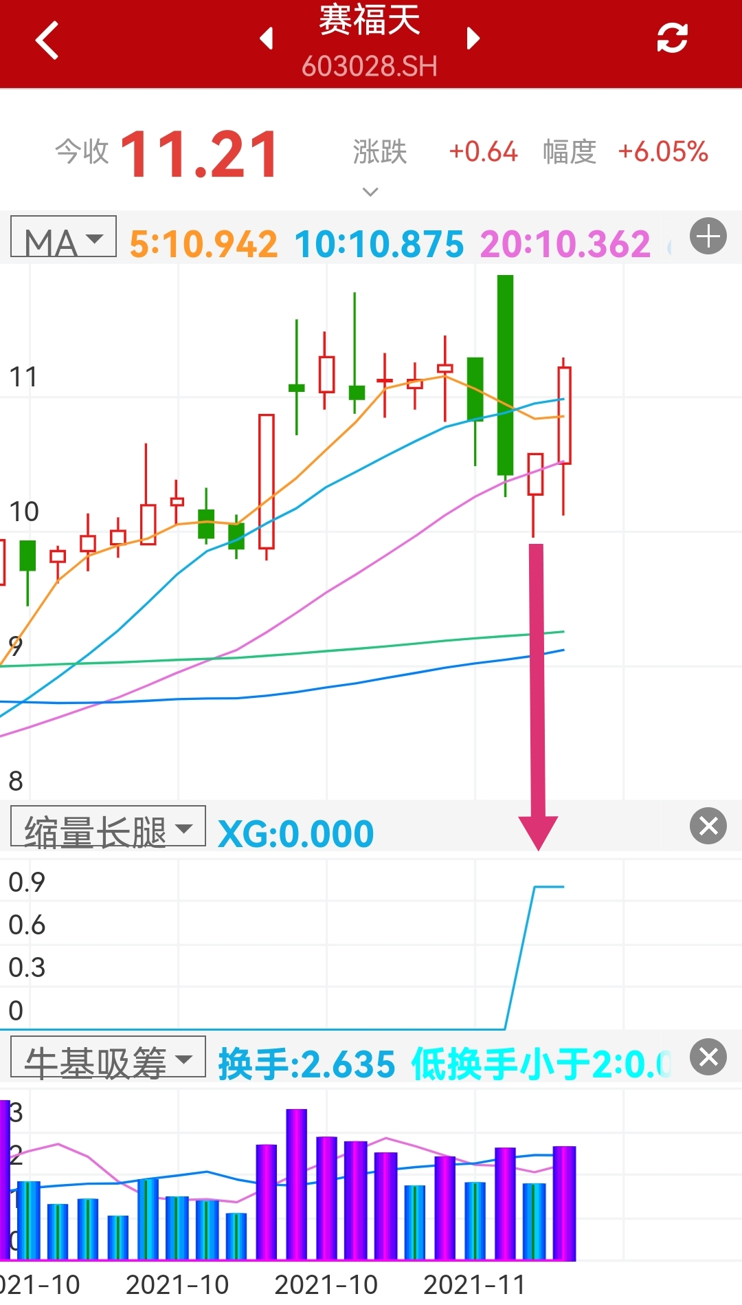 缩量长腿的使用技巧之一 作者:踏雪飞燕·阿权 更新:2021-11-08 20:44 缩量长腿的使用技巧一。 (股票讲解勿实盘追) 昨晚的复盘,当天的缩量长腿 公式:缩量长腿 合格的目标,赛福天603028是比较典型的。 那么次日的伏击点,就是上一日低点与下影中段附近的位置。 赏 阅读 1154