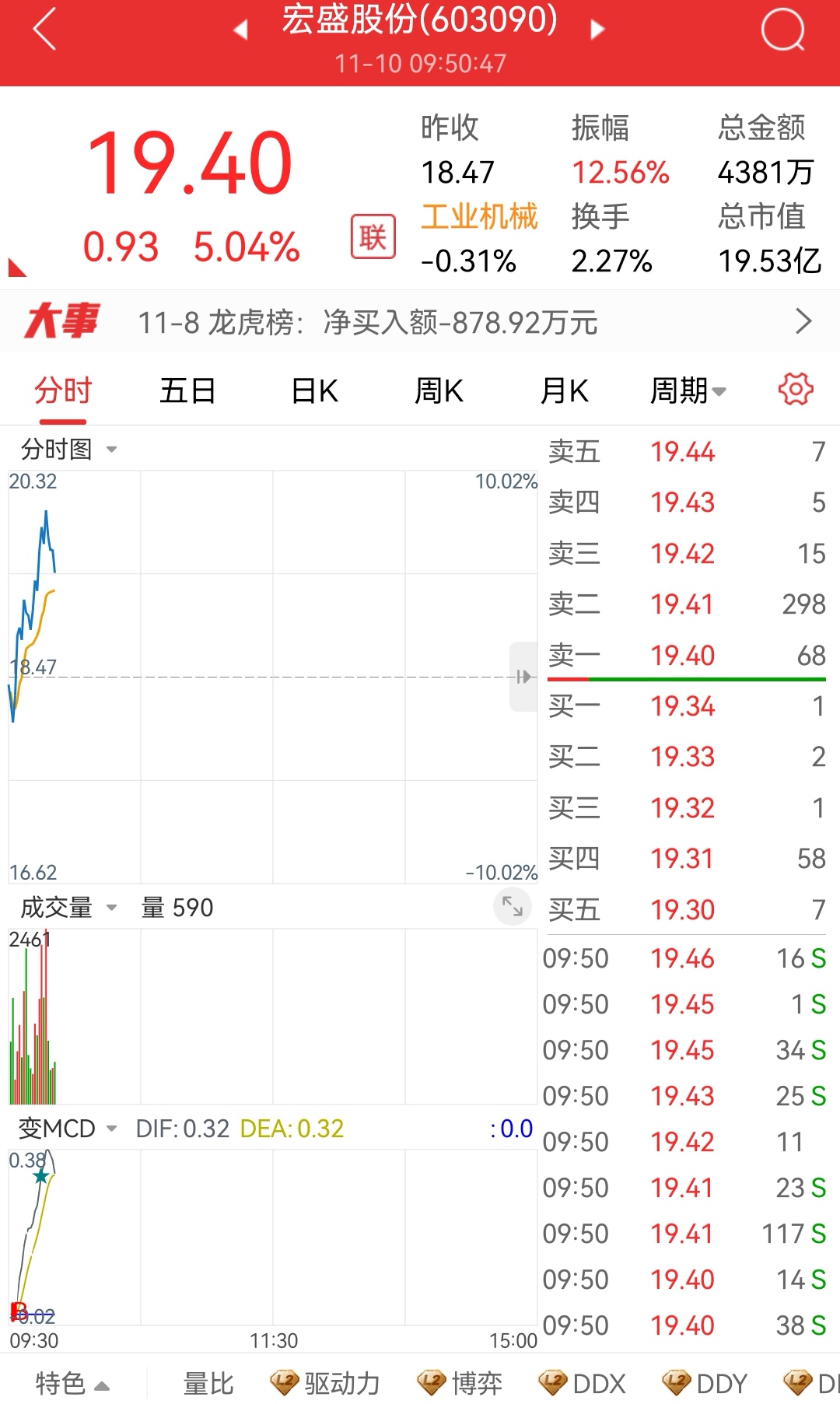 今日踏雪喜提通达、软控两支新板,宏盛为11月10号的踏雪。看图。