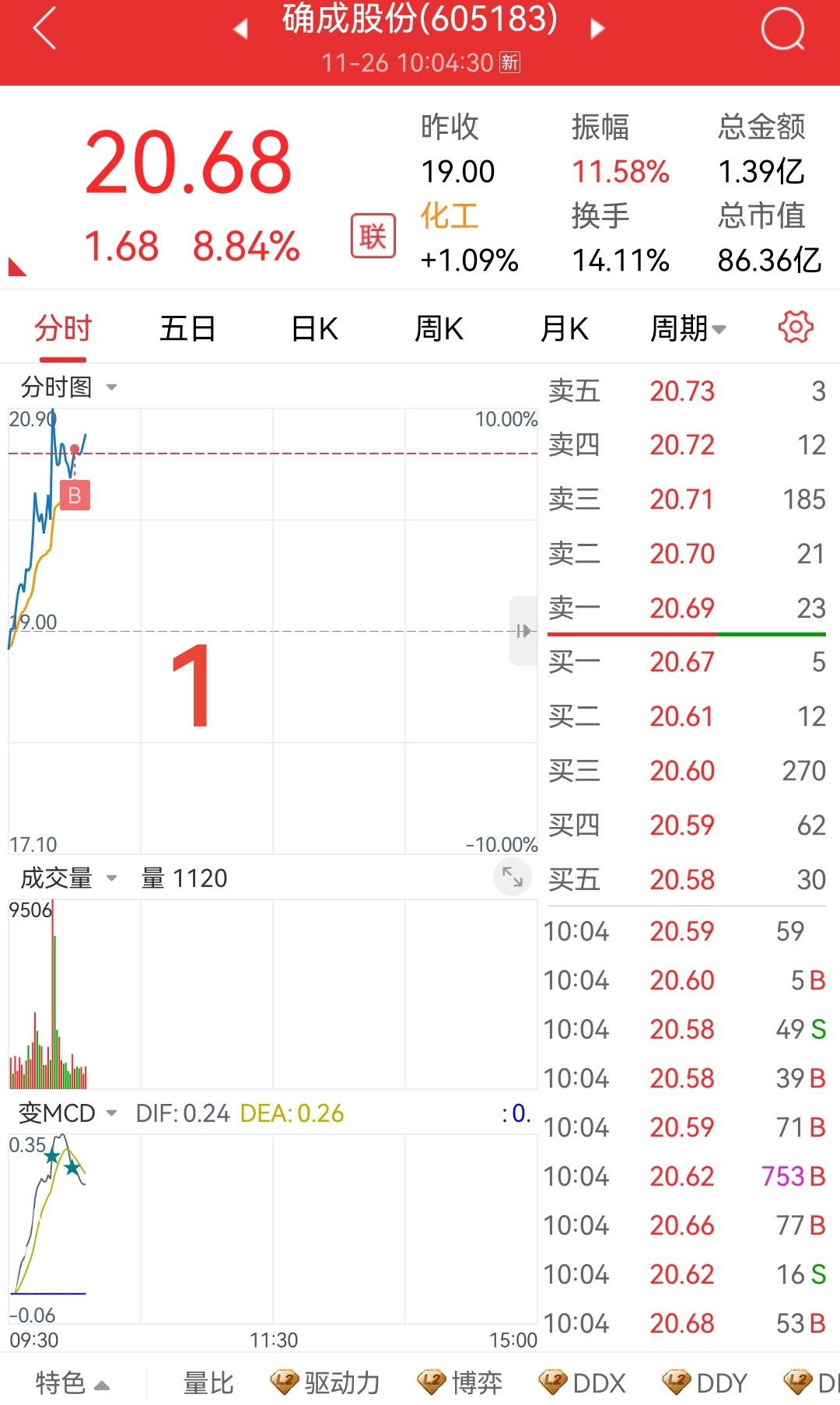 选择分时均线(黄线)平滑向上锐角上行,量比维持较高4,强势横盘中偶然下踏.分时黄线(踏雪)而介入。当日获利小于2%时,次日要择机高抛,保住本金,这是纪律!纪律!纪律!