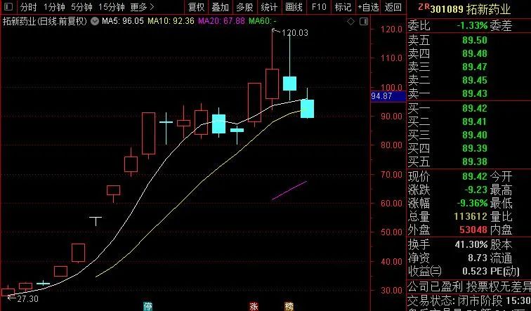 比如拓新药业,前天大跌7%,昨天又大跌9%,两天震幅高达33%。前天高位追进去的,直接亏了30个点,这对高位情绪带来很大的冲击!