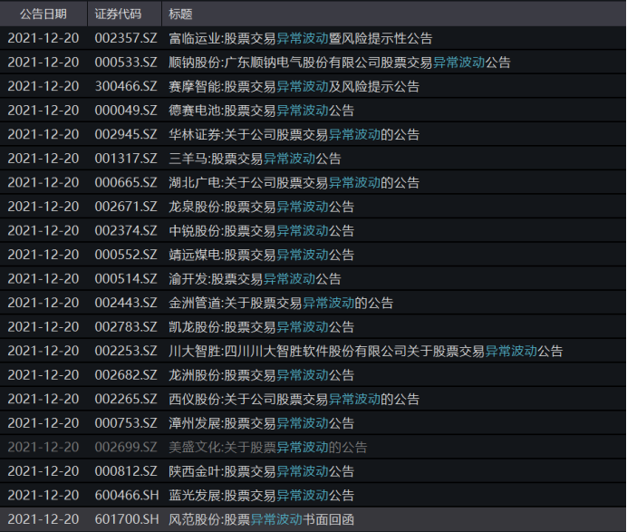三羊马等近40家A股公司发布异动公告 集体提示风险