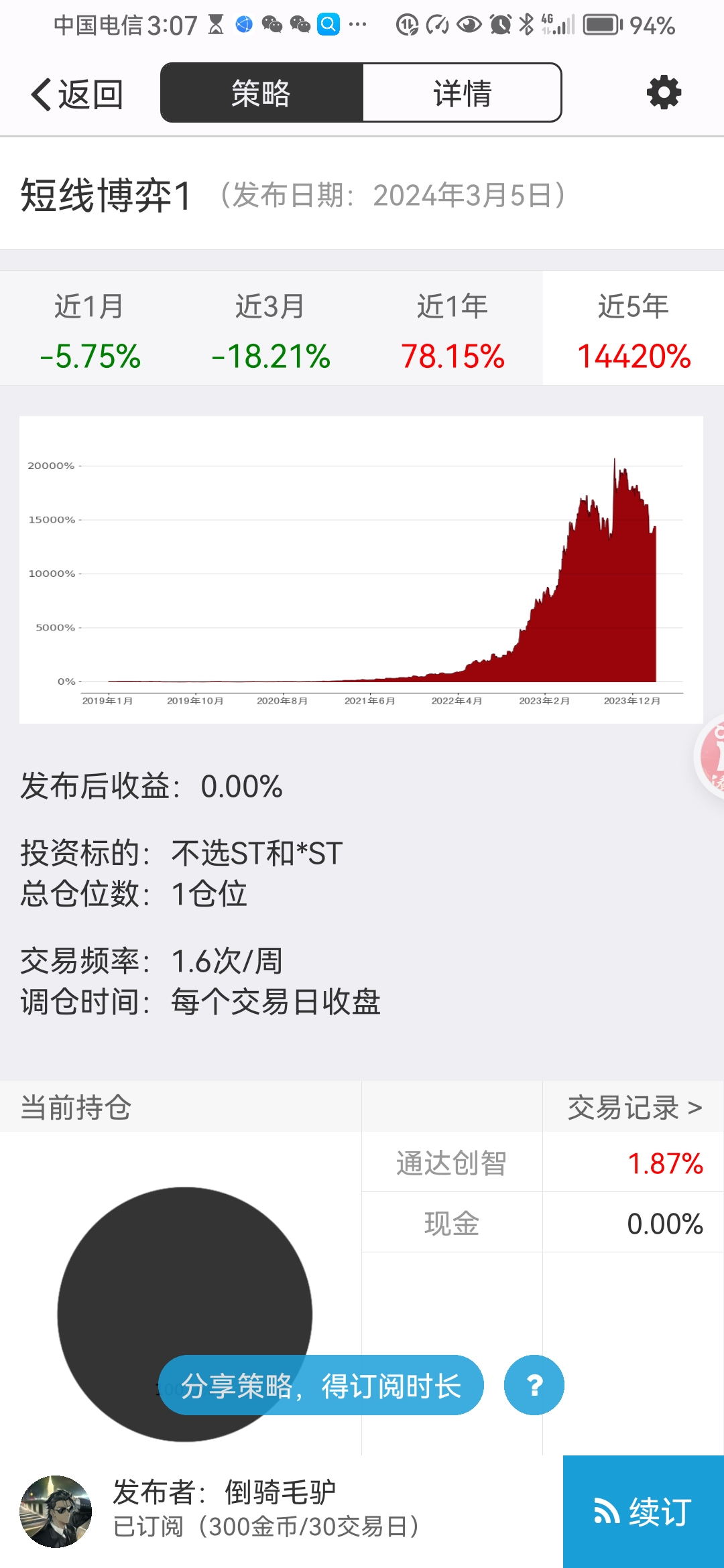 短线博弈激进操作,几乎是今买明卖超短策略,快订阅指标跟上操作吧,指标中有买卖信号,现价100尝鲜。 作者:倒骑毛驴 更新:2024-03-06 15:11 策略:短线博弈1 公式:短线博弈1 赏 阅读 2156