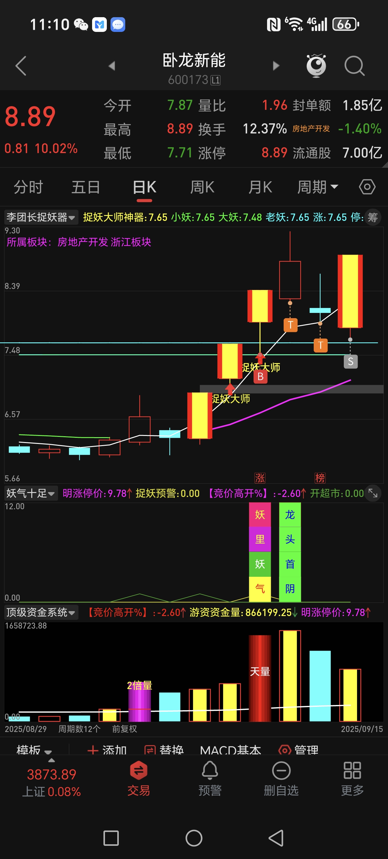 市场题材过多,势必会造成资金意见不统一,不断切换,第一时间发现市场的精神领袖,采用龙头战法,第一时间上了她,一直持有下去;