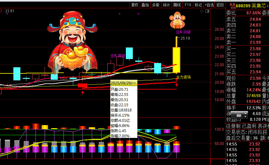 ㊙️庄K突破㊙️尾盘搞🥢点英集芯,止跌回踩买入涨停14%🈶🈚王者💪🐮🎉