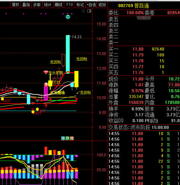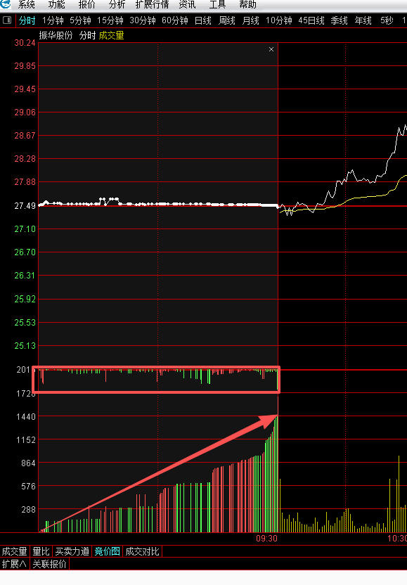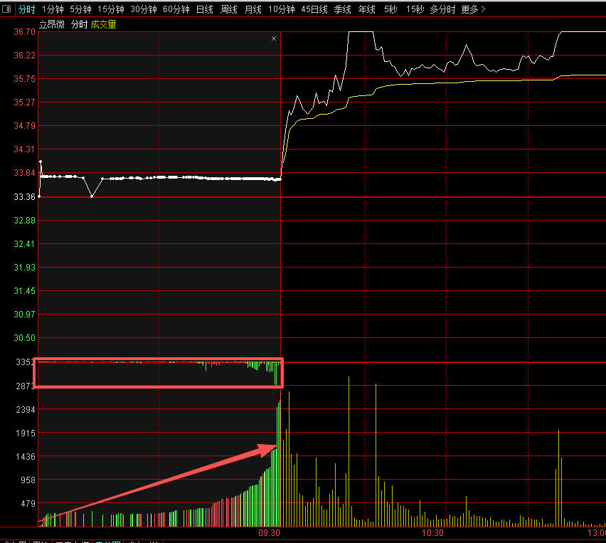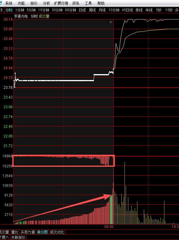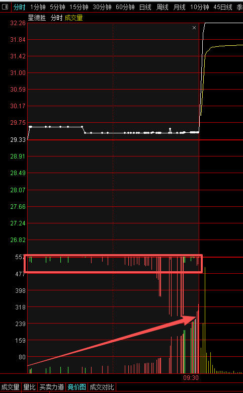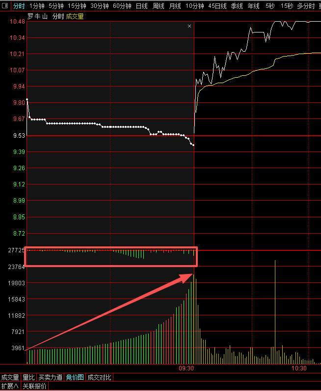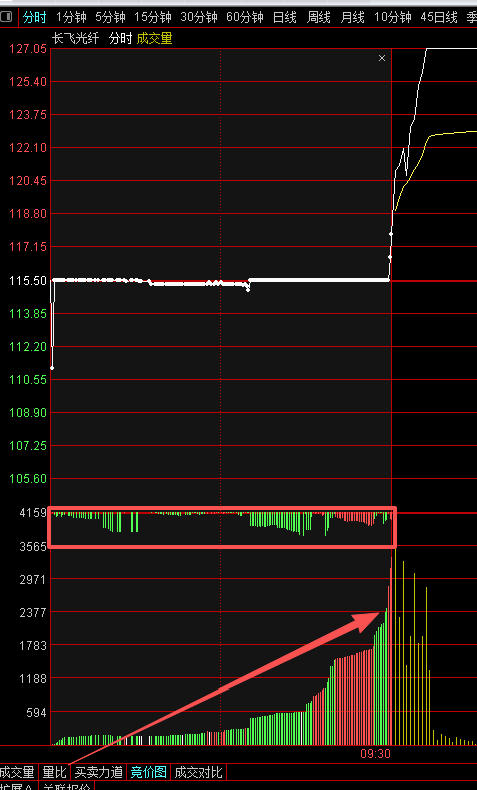 以下上涨案例,未匹配竞价都未超过1格,下方竞价量成三角形递增: