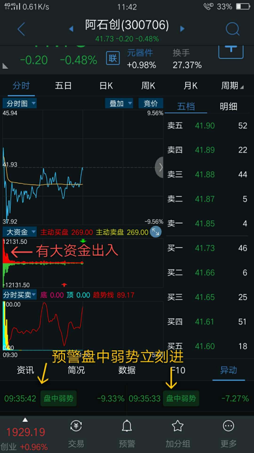 涨停后买法 关注公众号“ 肥尾量化平台 ”,公式 一键选股 本指标在开盘前选股,选出来当天逢低进入(建议通达信里的监控精灵预警盘中弱势出显的立即进入 这样一般买的是当天低点)。卖出见之前发布的{超神 买卖法}止盈 或者 股价低于买价立即出货防套。 (自己常用指标,结合〔资金进出〕成功率相当高) 如下图 :
