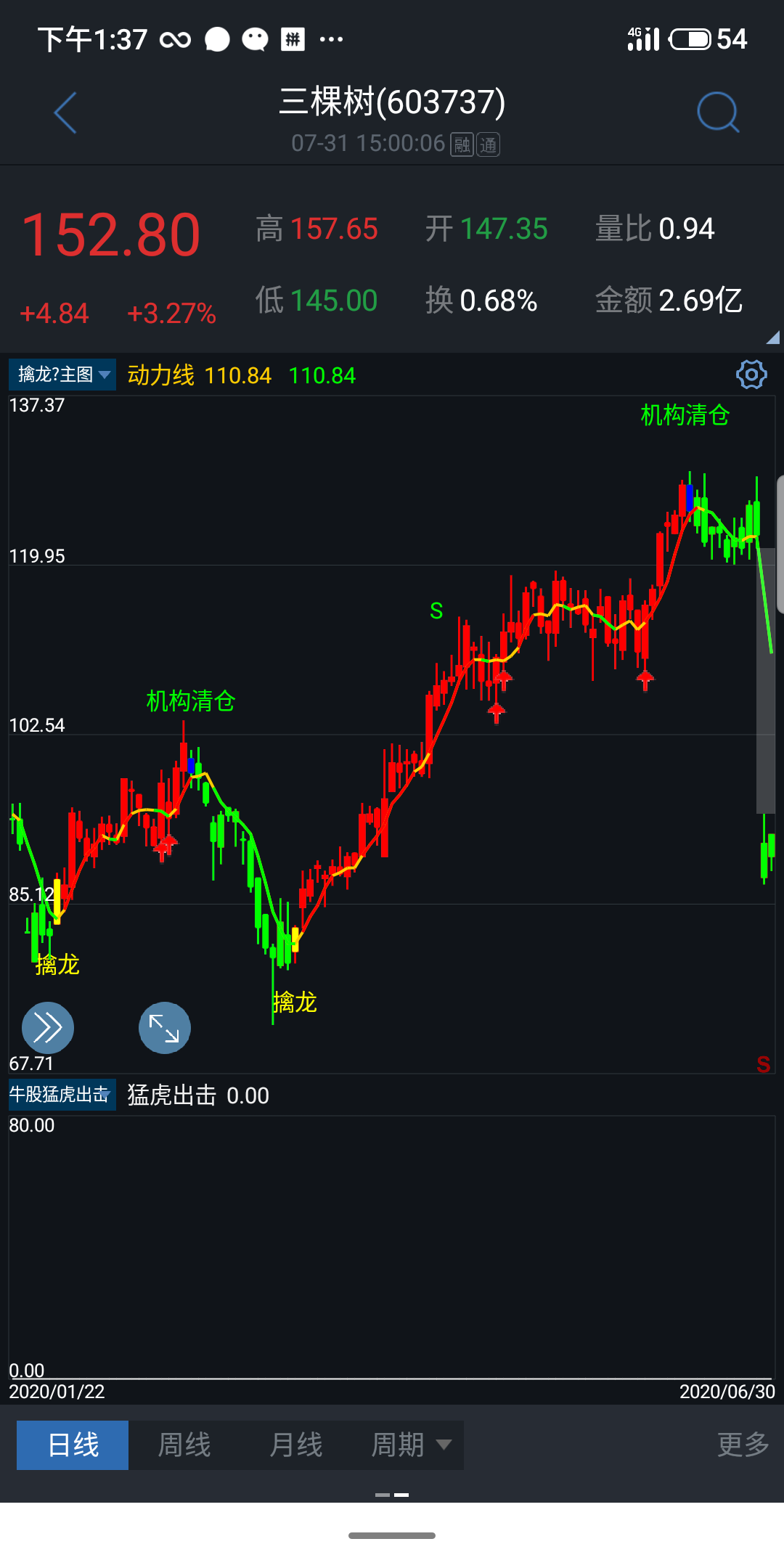 擒龙🐉主图🐉 包含未来函数 关注公众号“ 肥尾量化平台 ”,公式 一键选股 应广大用户要求今天定做这个主图擒龙🐉版;这个主图可配合专门针对购买产品的用户量身定做的;好的选股配上好的主图才能更清晰;在这里可以看到大资金和机构清仓情况用于我们在股市所遇到的;出场问题;这里可以有效的帮助! 这个是擒龙主图;买卖点提示非常好;也非常实用!